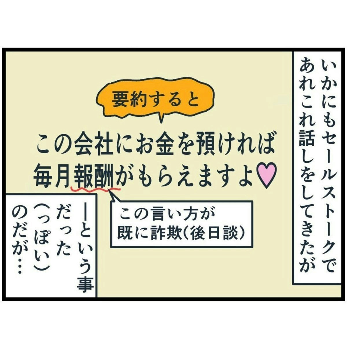 信用している友人の紹介だから「きっと悪い話ではないはず」と思いたいのは、人間としては当たり前なのかもしれません。しかし、そうした「性善説」的な思考を逆手にとって、相手は騙してくるのですね…。
