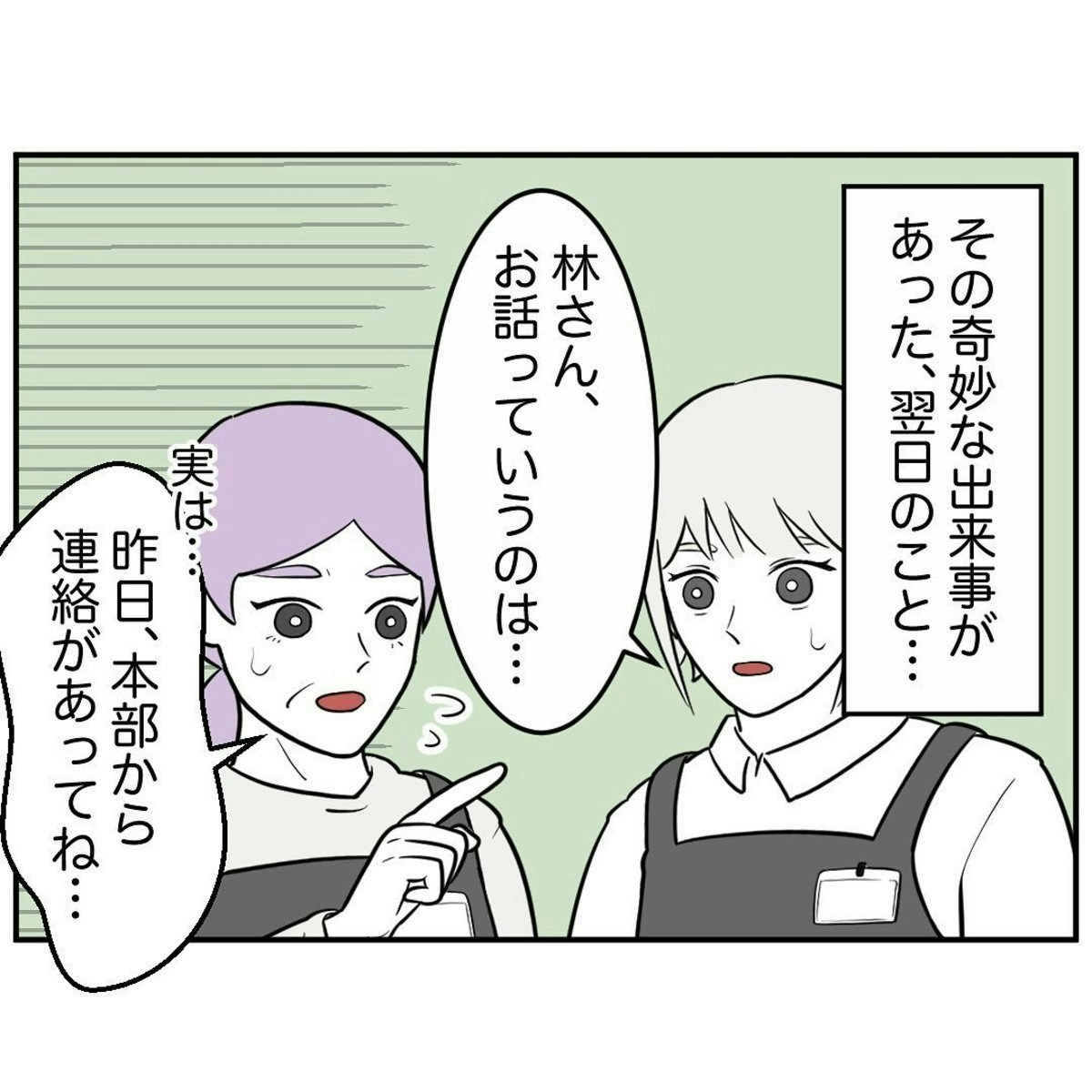 その男性客は、毎日来店してはほや助さんに接客対応を求め、どんな小さい買い物でも手書きの領収書を求めました。さらにはお店の自転車置き場から、仕事中のほや助さんをずっと見つめていることも…。ほや助さんは身の危険を感じることもあり、店長に話をしますが、実害が出ていないため通報は止められます。周囲の仲間はほや助さんとその男から守ってくれますが、中には話を真剣に聞いてくれない人もいました。
