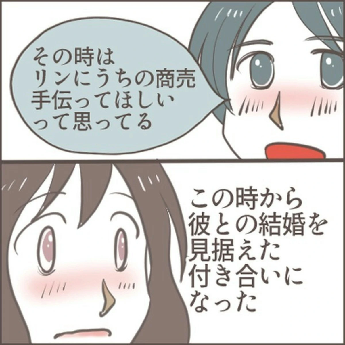 主人公のリンさんは、20代のころマー君という男性と交際していました。優しい彼で、リンさんは彼のことが大好きでしたが、実家が自営業である彼はどうも両親に溺愛されていたようで…。