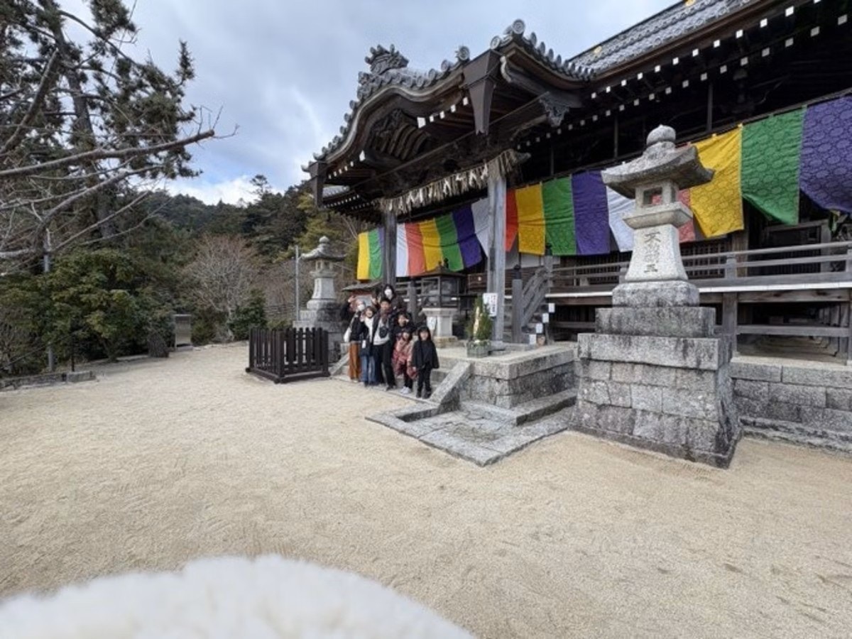 ちょっと目を細めて見ても、家族の顔がわかりにくいほど遠目から撮影した家族写真。きっと父は家族のバックに御堂や緑・空も写真に収めたかったのでしょうね。