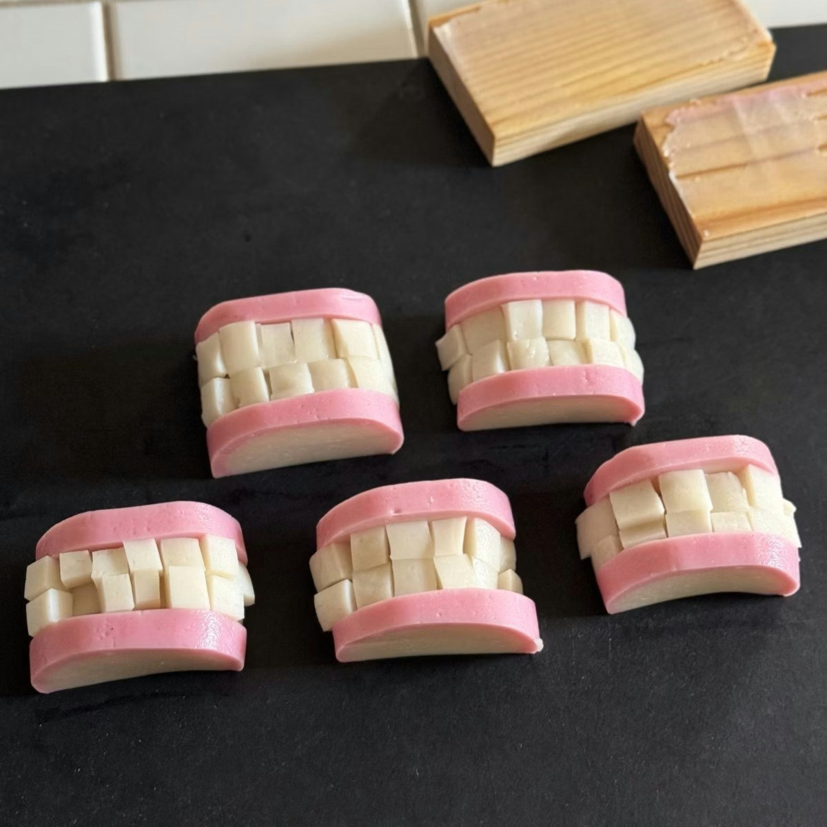 なんと衝撃的なフォルム!かまぼこで歯を作るなんて、斬新なアイデアですよね。この投稿には「思ってたんと違う」「鶴とか花かと思ったら、口!」「おせちに入っていたら泣く」などのリプライがついていました。