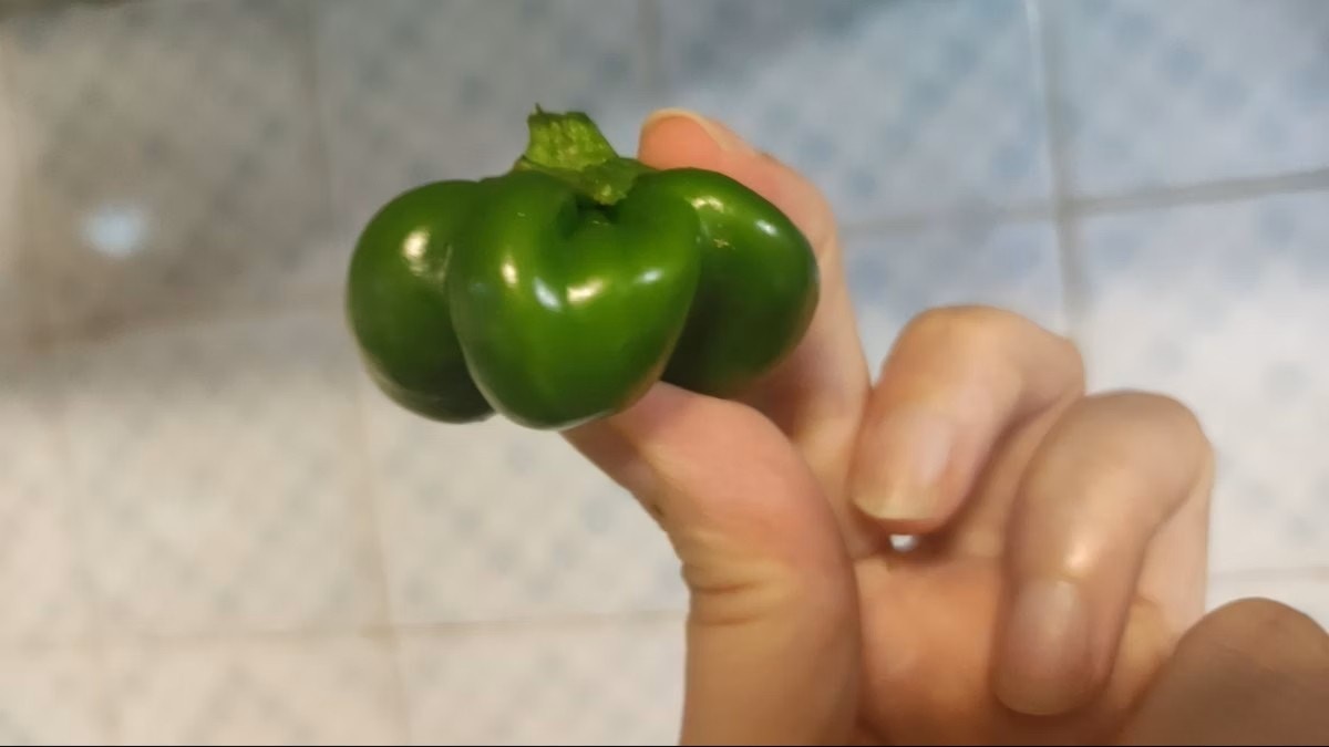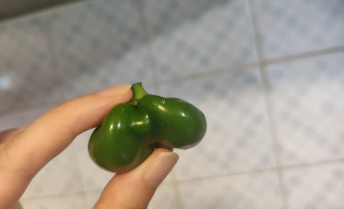 ゆき臓チャン👀🍑さんが投稿していたのは、庭で採れたピーマン。愛情をたっぷり受け、さぞ大きく育ったのかなと思いきや…まさかの展開に思わず笑ってしまうはず。