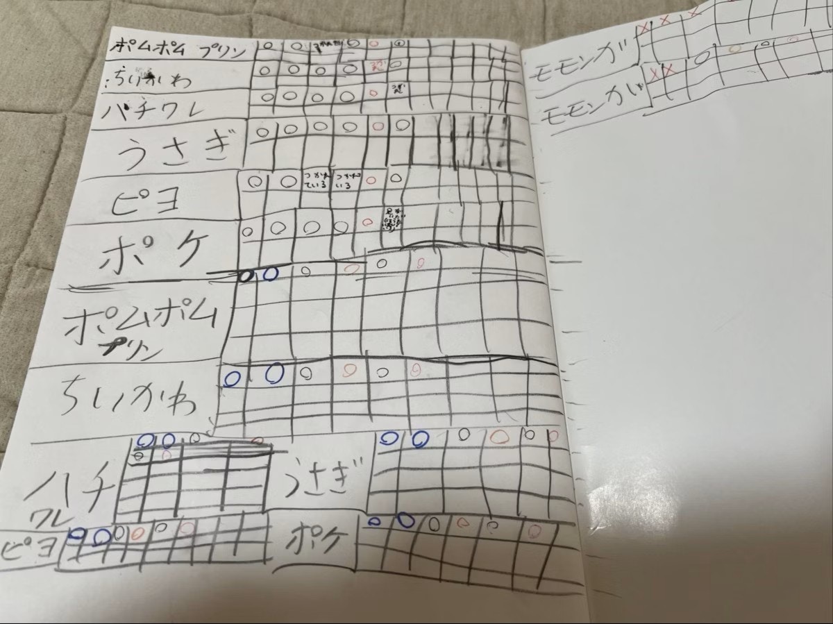伊藤賀一さんの娘さんが作ったのは大人顔負けの「チェック表」!表には持っているぬいぐるみがずらっと一覧で記入され、健康度が丸で書かれています。しかし、表をよく見てみると、どうもみんなが元気いっぱいではない様子も…。