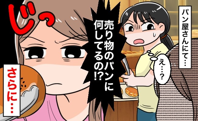 投稿者さんの目の前にいたママは、離れたところからパンを選ぶのではなく、パンを1つずつ顔の近くまで持っていき、隅々までチェック。気に入らないパンは元に戻すという行動を繰り返していました。