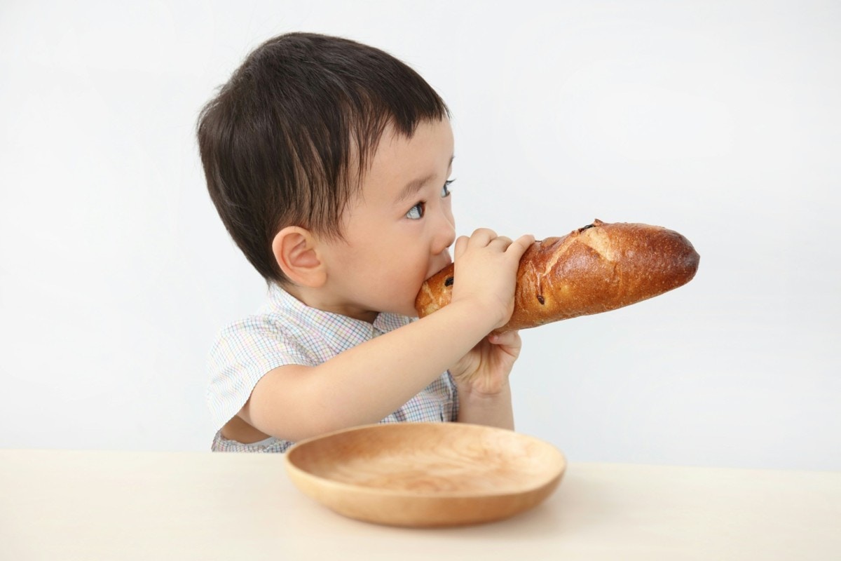 「ママのごはん、大好き…!」と丸ごとキュウリ食べている3歳息子