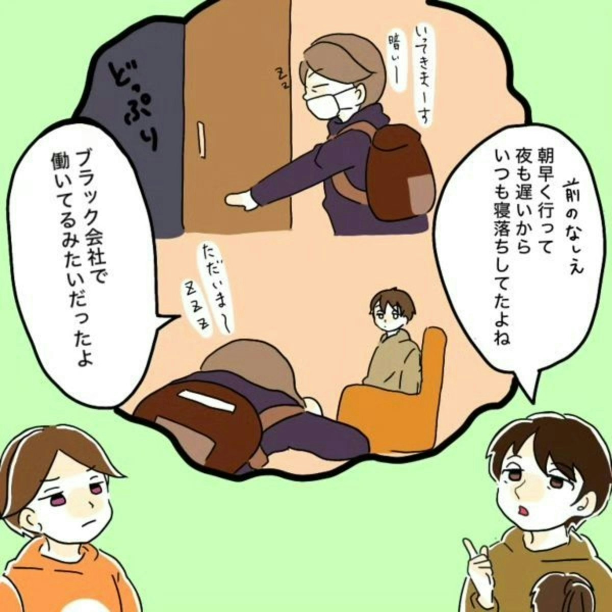 驚いて夫に報告するも、夫からは「結構なブラックではなかったか?」と冷静に突っ込まれます。ただ、夫の突っ込みは確かにと思う一方で、なしえさんは元の職場に戻りたい理由がありました。それは「今から新しい職場を探すのが面倒」という気持ち。