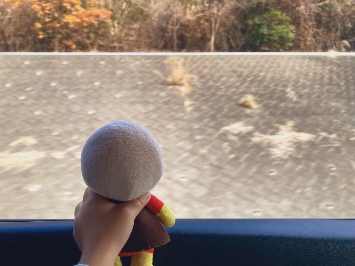 車で帰省中、息子が静かになったので寝たのかと思ったら、アンパンマンに外の景色を見せてあげていてやさしい。 ※3