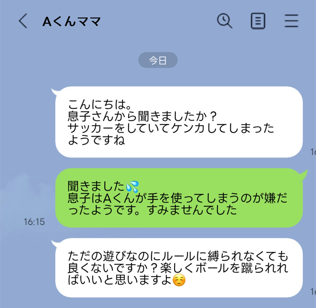 理由をきくと、サッカーは手を使っちゃダメなのに、その子が度々手を使っていて、息子が何度も手は使わないでと注意しても辞めてくれないから息子が怒ってしまい、「手を使うなって言ってるのに何回言っても聞いてくれないし楽しくない!もう遊びたくない!」とその子に言ってしまったみたいで、遊びたくない!と言われた事に、その手を使う子も怒ってしまいました。相手のお母さんから、「喧嘩してしまったみたいですね。」とLINEがきて、もちろんごめんなさいと伝えた上で、息子はこーゆうことが嫌だったみたいです。と返したら、「ただの遊びなのに、そんなガチガチのルールに縛られないといけないのですか?楽しくボールが蹴れればよくないですか?」などと返事が来て驚きました。わたしは、あー、息子の気持ちはよくわかる。小さい子相手ならともかく、小学生だしその子もサッカーのルール知ってるはずなのに、ルール守らないから、イライラしたんだねー、でも遊ばない!って言うのは本当にもう遊んでもらえなくなるから言わない方が良いかもね。と話しましたが、相手のお母さんから、うちの息子が頭が硬いと言わんばかりのLINEがきて凹んでます。学校でもよく言い合いしてるみたいで、こういう意見の食い違いなんだなとわかりました。そもそもの性格が合わないんじゃないかなと。でも喧嘩しますが息子はその子が大好きみたいなのです。一緒に遊びたいのに、いつも途中でどっかいっちゃう!とか言ってますが多分息子のガチガチなルールに縛られるのが嫌なんだろうなと思います😭