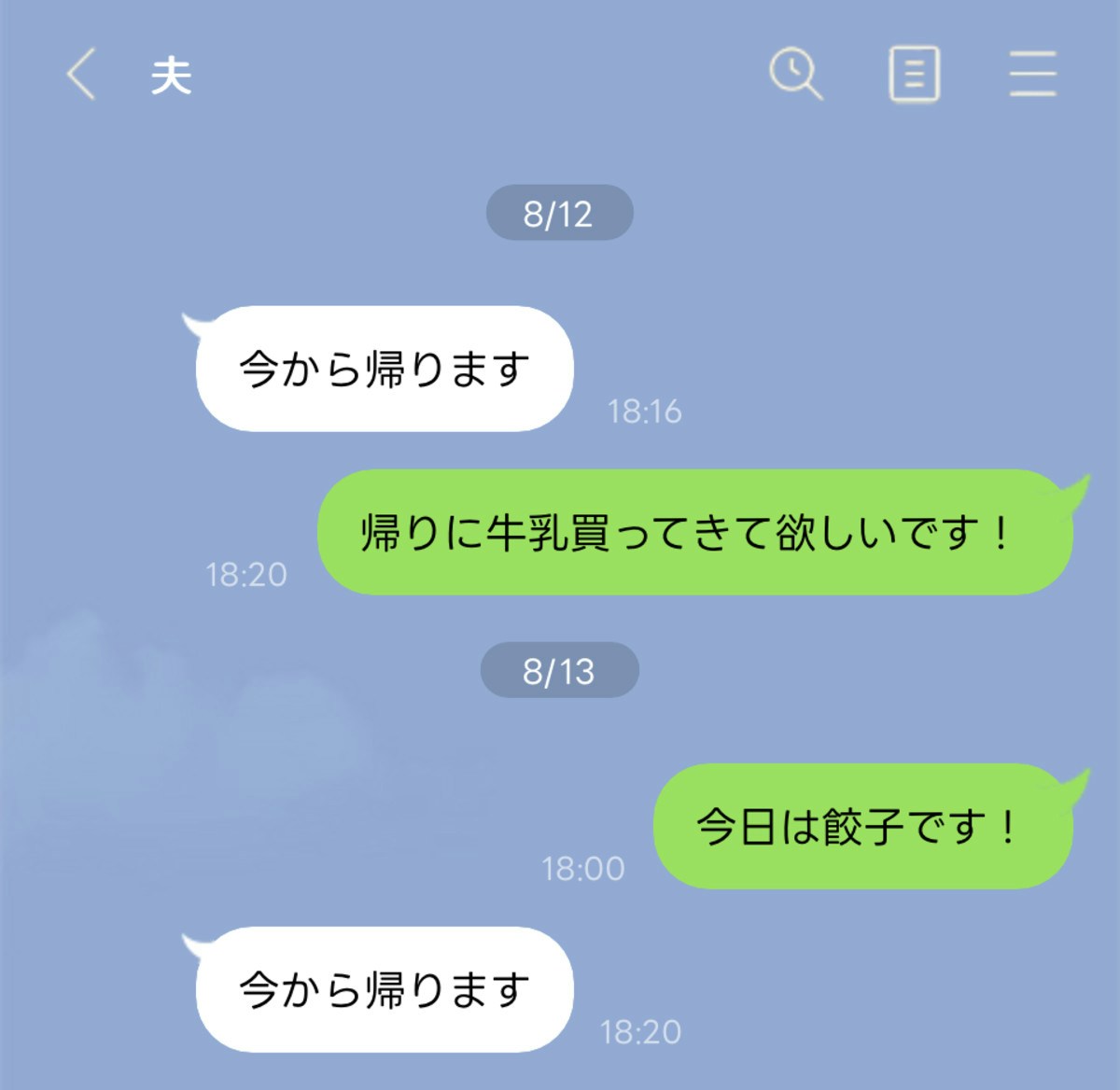 私の旦那とのLINE、『今から帰る』だけですwww🤣🤣