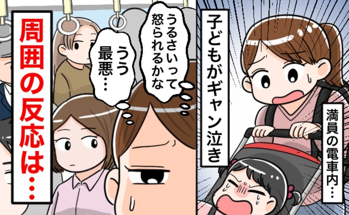 1歳半になる子どもを連れて満員電車に乗ったA子さん。どうか子どもがぐずりませんように!という願いもむなしく、最も恐れていた展開に。慣れない場所と多くの人に圧倒されてしまったのか、子どもはギャン泣きしてしまったのでした。