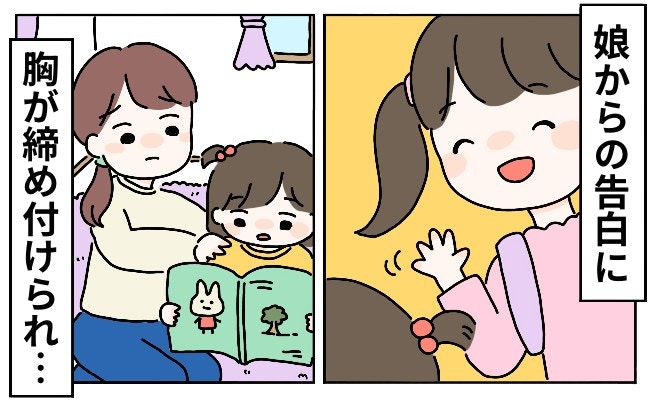 もう一度、静かに尋ねた。なつきは絵本をぎゅっと握りしめ、床を見つめている。なかなか言葉が出てこない。無理に問い詰めるのはやめようか、そう思った時だった。
