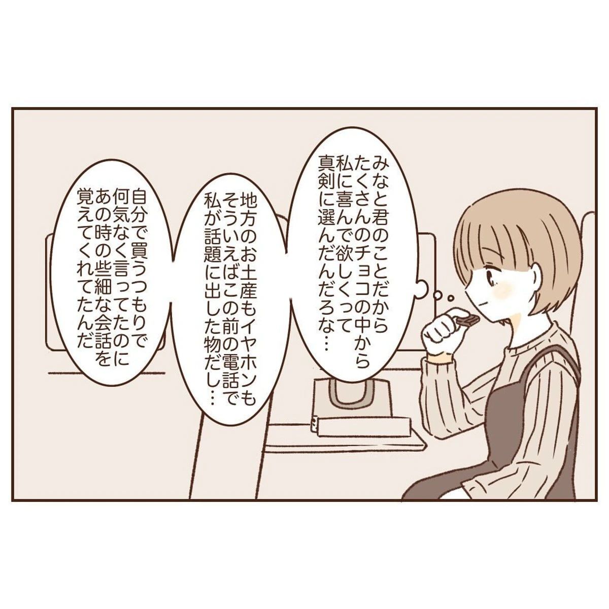 電車の中で、みなとくんにもらったチョコレートを食べながら、あらためて彼の優しさや細やかな気配りに感謝の気持ちが湧いてきました。