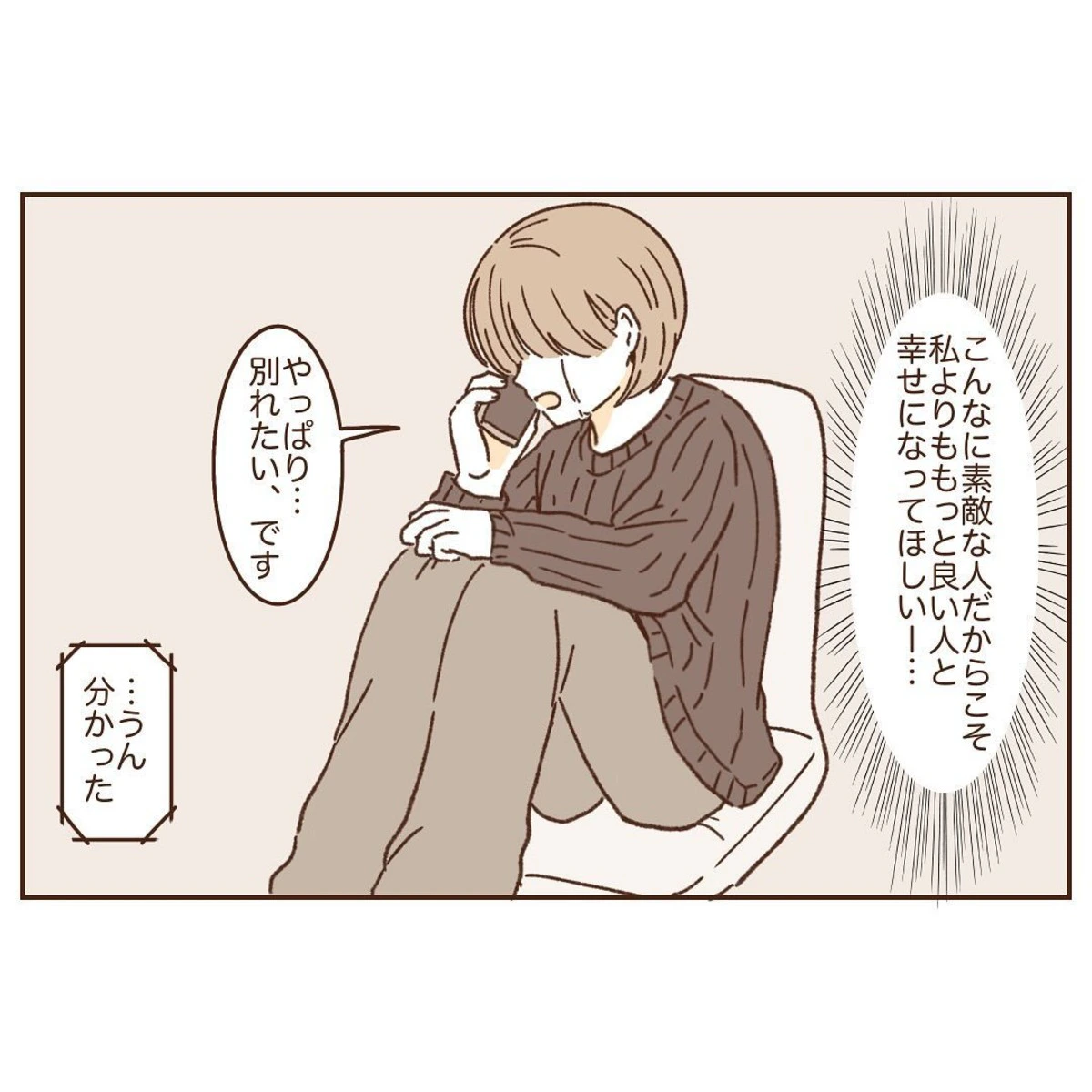 みなとくんは、くらげさんの幸せを思い、身を引くことを決意しました。しかし、くらげさんは彼の気持ちを聞いたあとも、別れを選ぶ考えを変えませんでした。