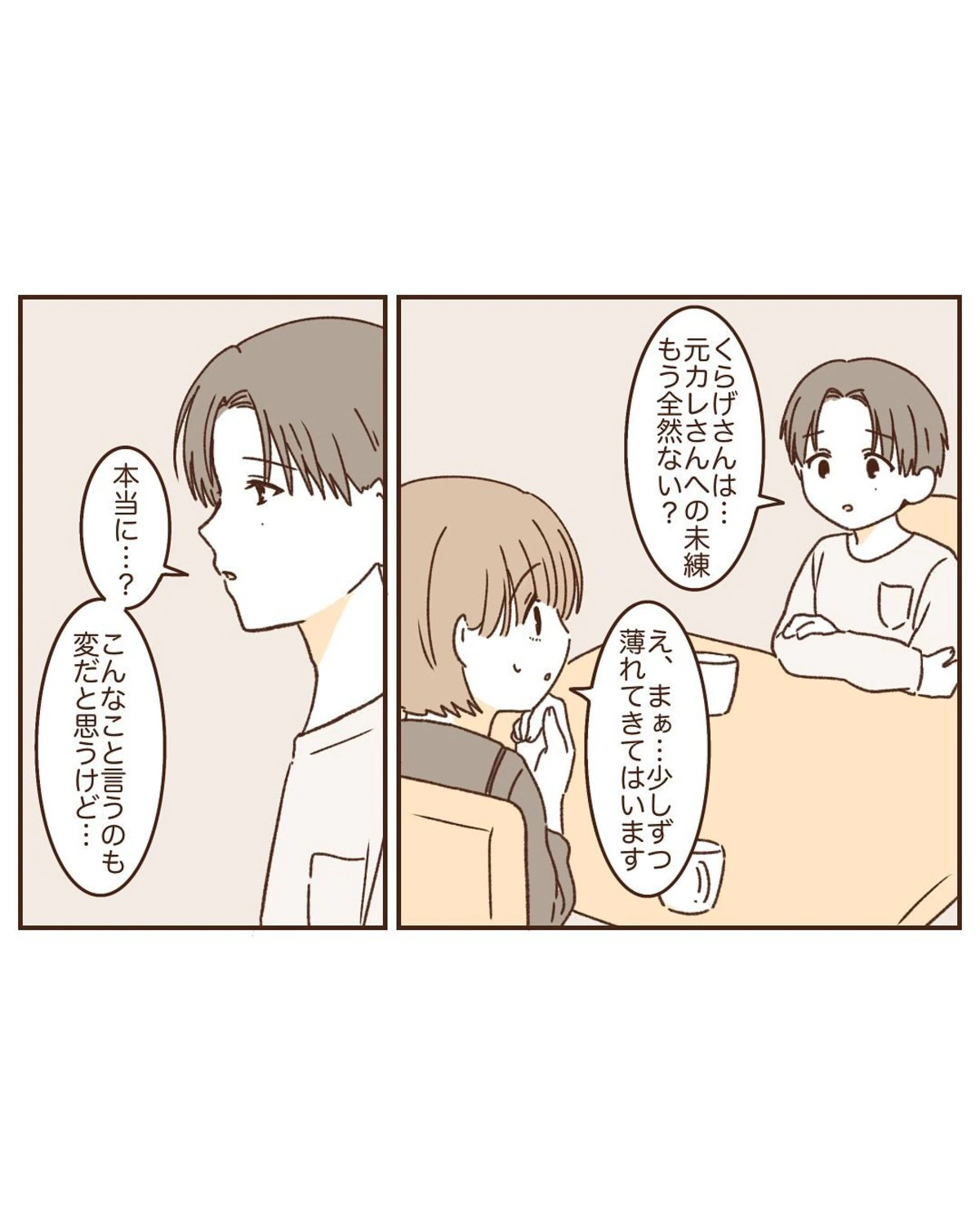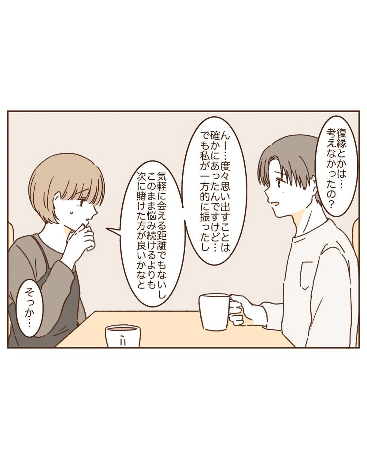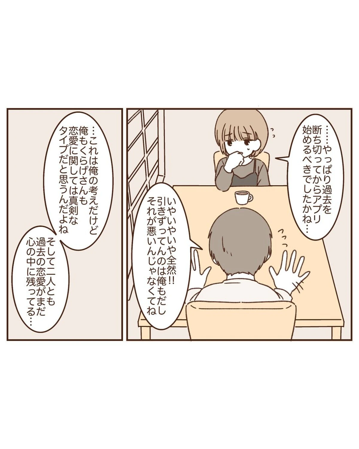 二人は、お互いに過去の交際相手への未練があることに気づき、今後の関係についてじっくり考えることにしました。