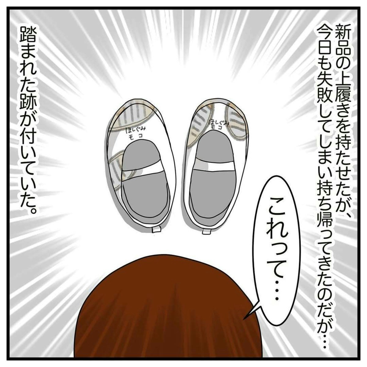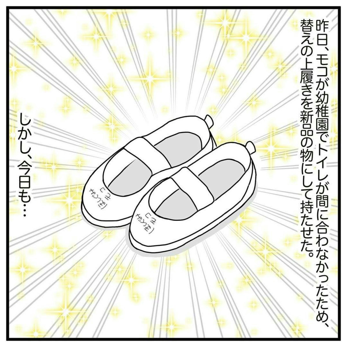 アサコさんは、モコちゃんに新品の上靴を持たせました。しかし、その日もモコちゃんはトイレに間に合わず、失敗してしまったと話しました。さらに、上靴には、誰かに踏まれた跡がたくさん残っていました。