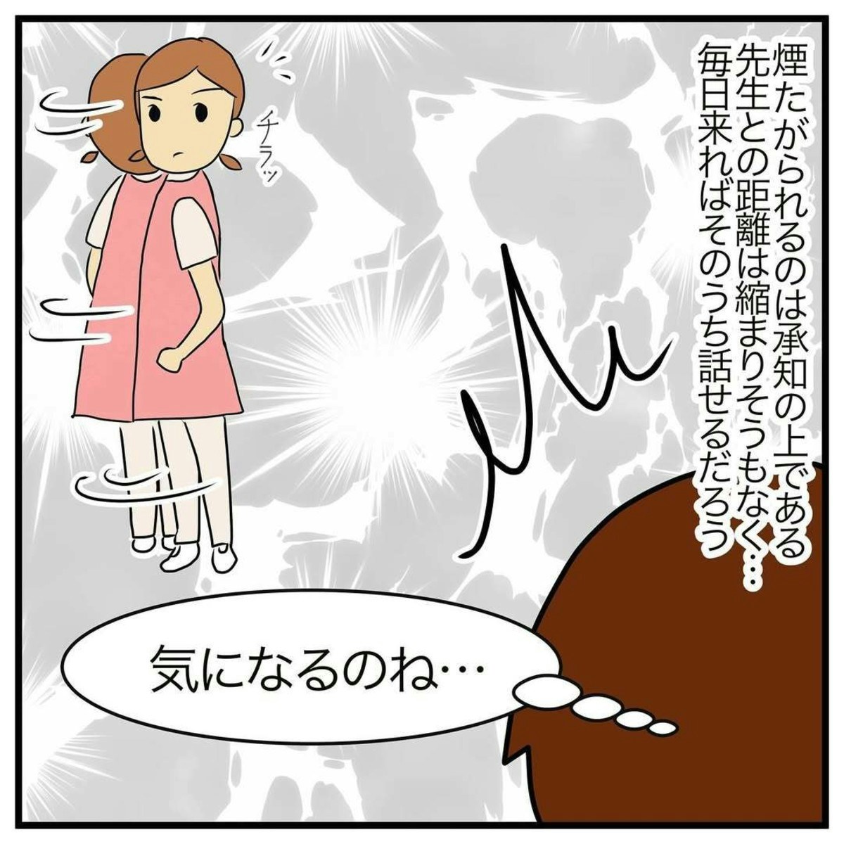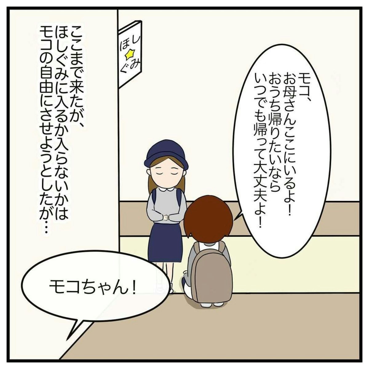 アサコさんは、モコちゃんの気持ちを大切にしながら、サポートを続けました。教室に入るのをためらうモコちゃんですが、今日は友だちのマコちゃんに遊びに誘われたことで、元気に過ごすことができたようです。