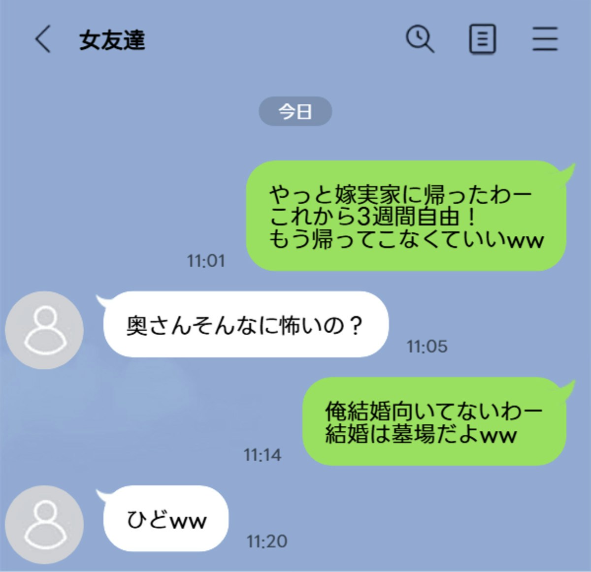 里帰り中に夫が女友達に愚痴…
