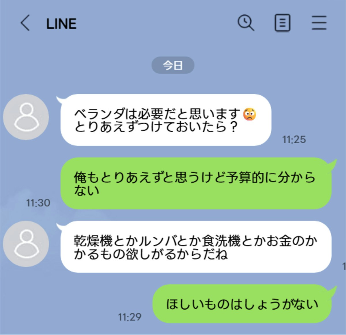 夫にLINEを見たことは言えませんが、予算オーバーになったとき乾燥機等削った方がいいと思うか本心を聞いてみたいと思います。