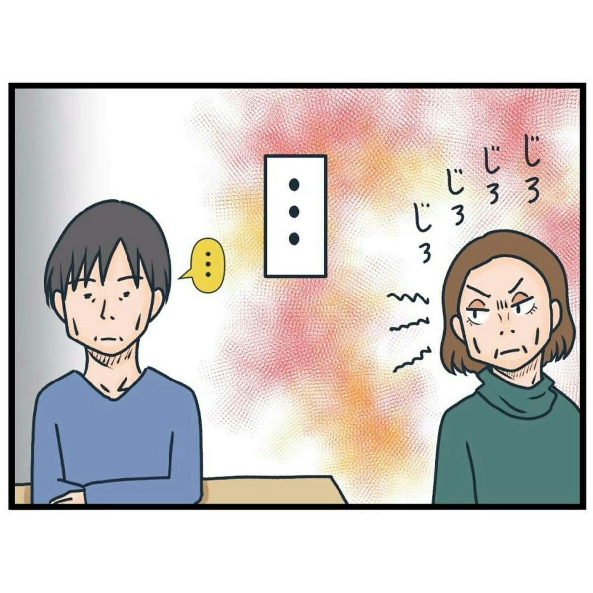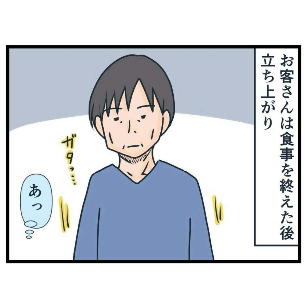 常連客・問句さんは、理不尽な言いがかりをつけ、一人のお客さまを目の敵にしています。はたから見ても「見すぎ!」と思うほど、じろじろと視線を送っており、ヒヤヒヤしますね…。