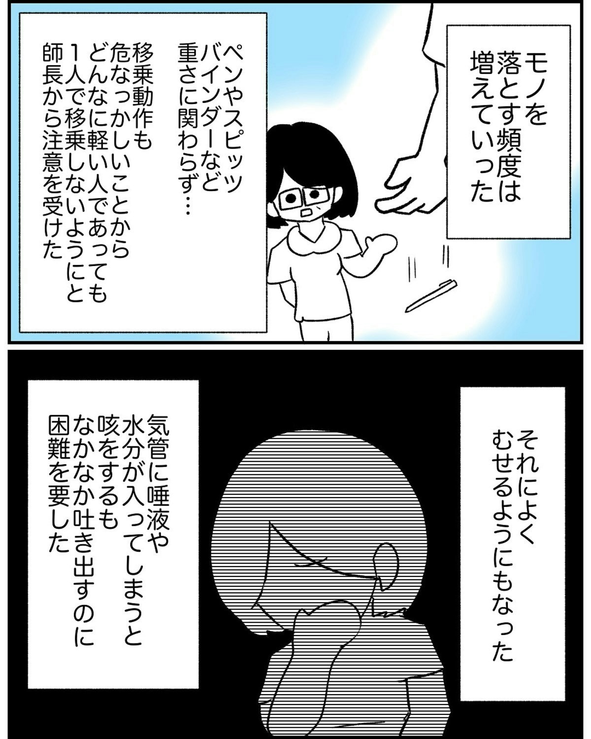 ひんぱんに物を落としたり、むせるようになったり…。診察を受けても、原因は不明のままでした。ですが、あきらかに花さんの症状は悪化しています。