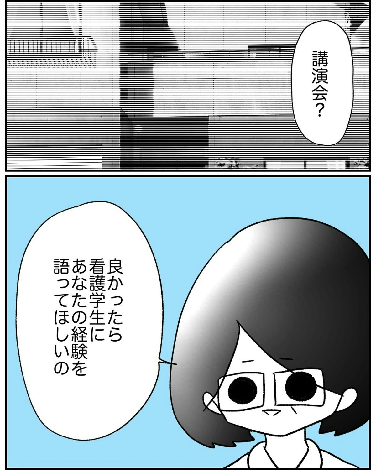 そんなある日、看護学生向けの講演会を依頼されます。思い切って引き受けた花さんは、「伝えること」に生きがいを見出します。