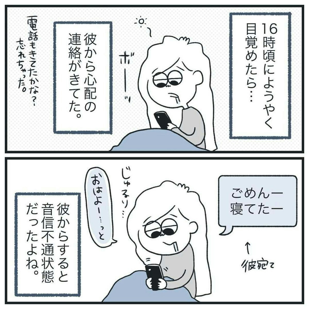 ロングスリーパーのヒマ子さんにとって、たっぷり睡眠をとるのは珍しくありません。ですが、ショートスリーパーの彼氏にとって、「寝てた」は、信じられないようです…。