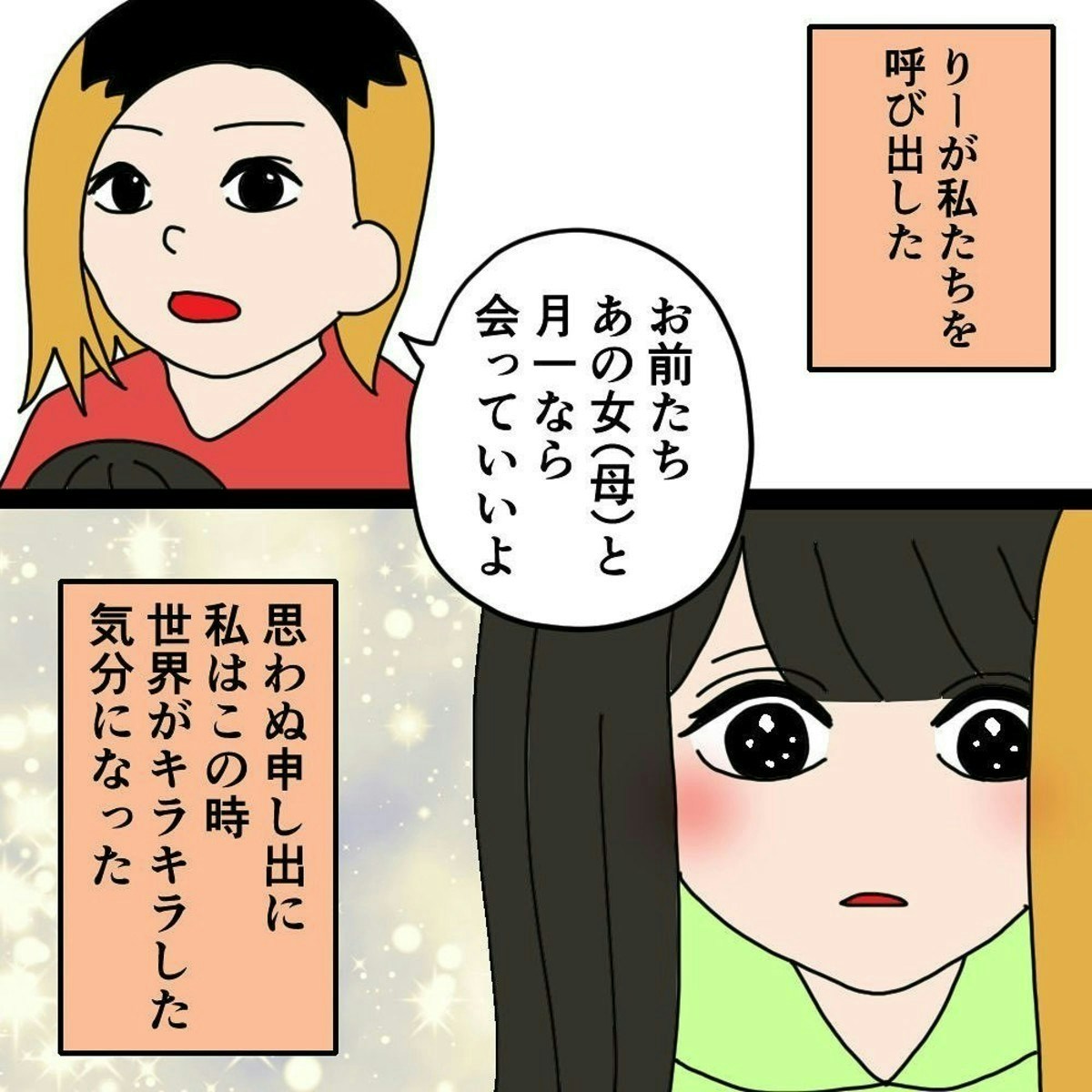 突然、生みの母と会うことを許されました。ですが、りーはさまざまな条件をつけます。結局は、お金が目的だったようです。それでも、実母と再会できた姉妹は、幸せそうですね。