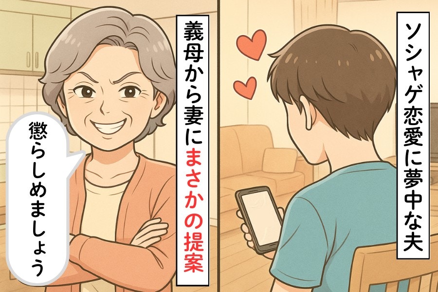夫が他の女とゲーム内結婚をしていた…その事実に打ちのめされるユウコの元へ、義母がやってきます。ユウコは思い切って義母にそのことを相談していますが、物事は思わぬ展開へ。