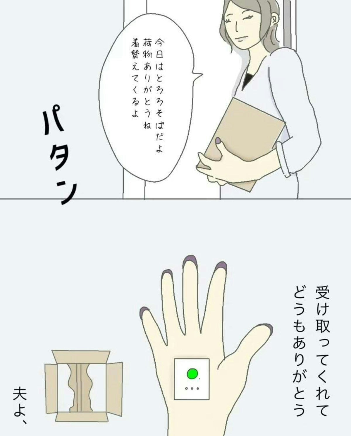 まりもさんがネットで買ったGPSが届く日、よりにもよって夫は定時で寄り道もせず帰宅。何とまりもさんが買ったGPSを受け取っていました。しかし細かいことに頓着しない性格の夫は、その荷物が何かを疑うことはありませんでした。