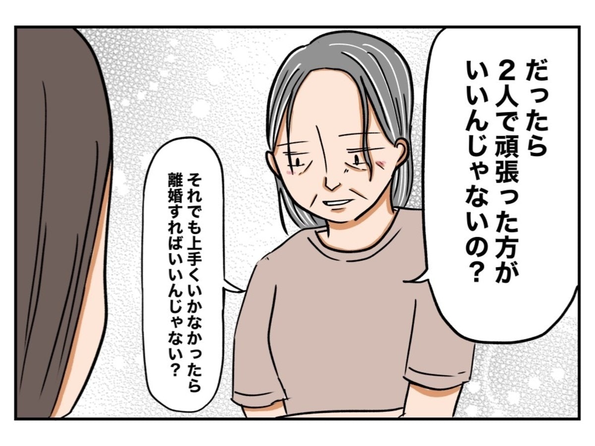 メイカの愚痴に対し、厳しい言葉を返した実母。メイカにとっては耳の痛い話だったに違いありません。メイカ自身が仕事と家事・育児で頑張ってきたことはきっとその通りに違いありません。ただ、夫も、彼なりの精一杯を尽くしてメイカと築く家庭を守っていた事実もあります。