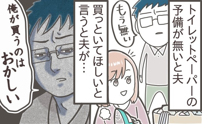トイレットペーパーの予備が完全になくなった状況で夫に買い物を頼んだところ、「自分が買いに行くのはおかしい」と言われてしまったというお悩みです。