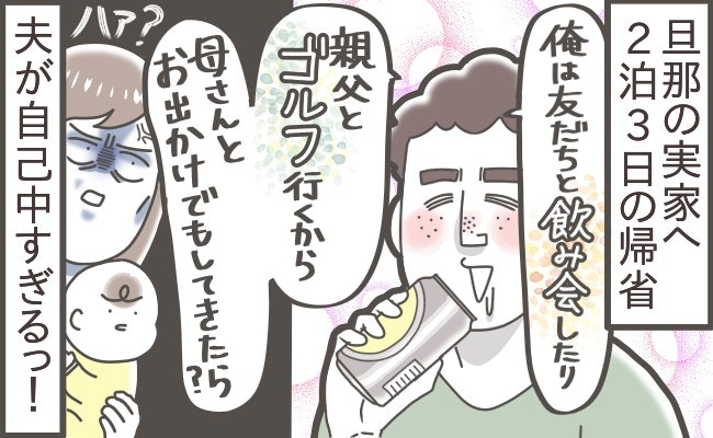 帰る予定ですが、聞いていると家族3人で過ごす事なく子供の世話を私に押し付けて自己中すぎて