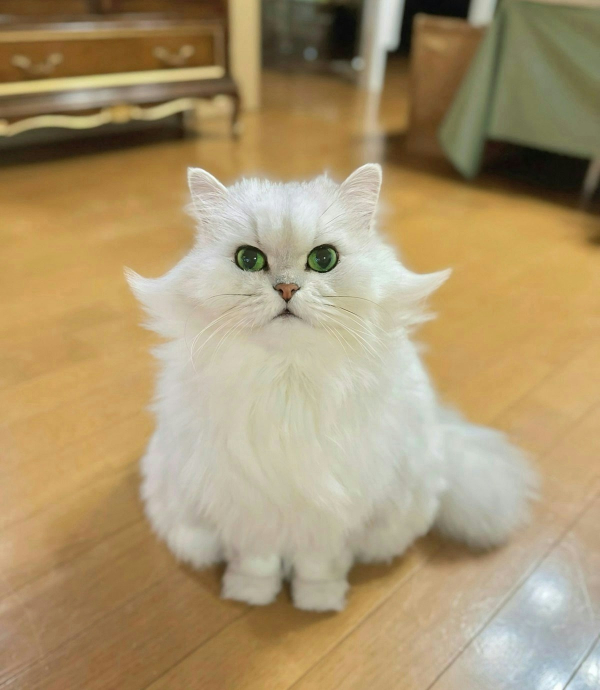 きちんとした姿勢でまっすぐこちらを見つめる姿は中世ヨーロッパの貴族のよう。肖像画に描かれそうな菅良です。左右ともバランスよく整えられた毛並みはとってもかわいいですね。この投稿には「美しい」「姿勢も整ってますね」「髭男爵のひぐちくんを思い出した」といったリプライがついていました。