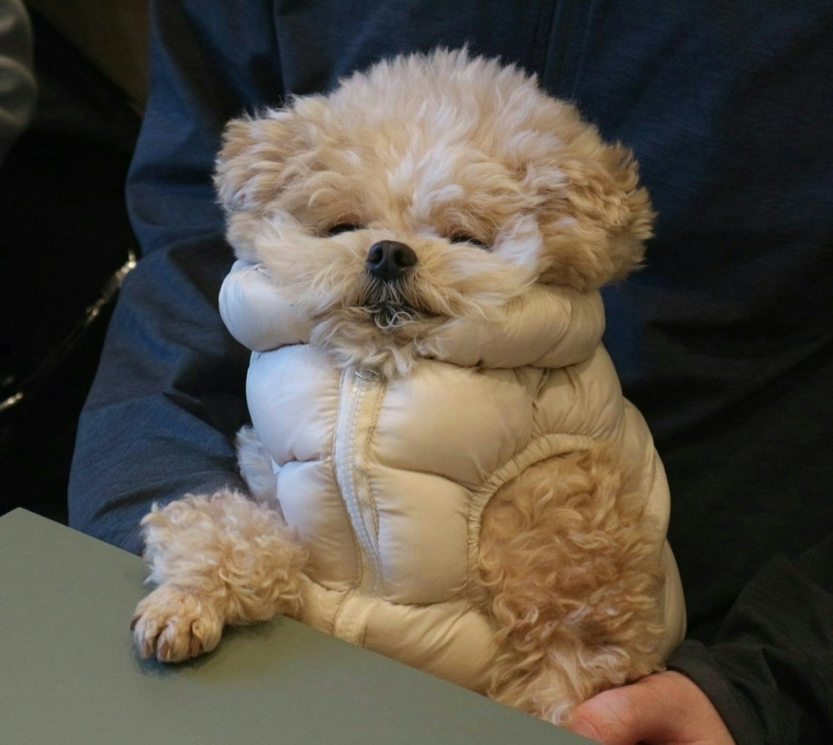 あったかそうなダウンを着たふわちゃん。暖まってきたせいか、だんだんうとうとしてきちゃったようです。眠たげな表情がとてもかわいいですよね。このままそっとしておいたら、お昼寝してしまうのでしょうか。