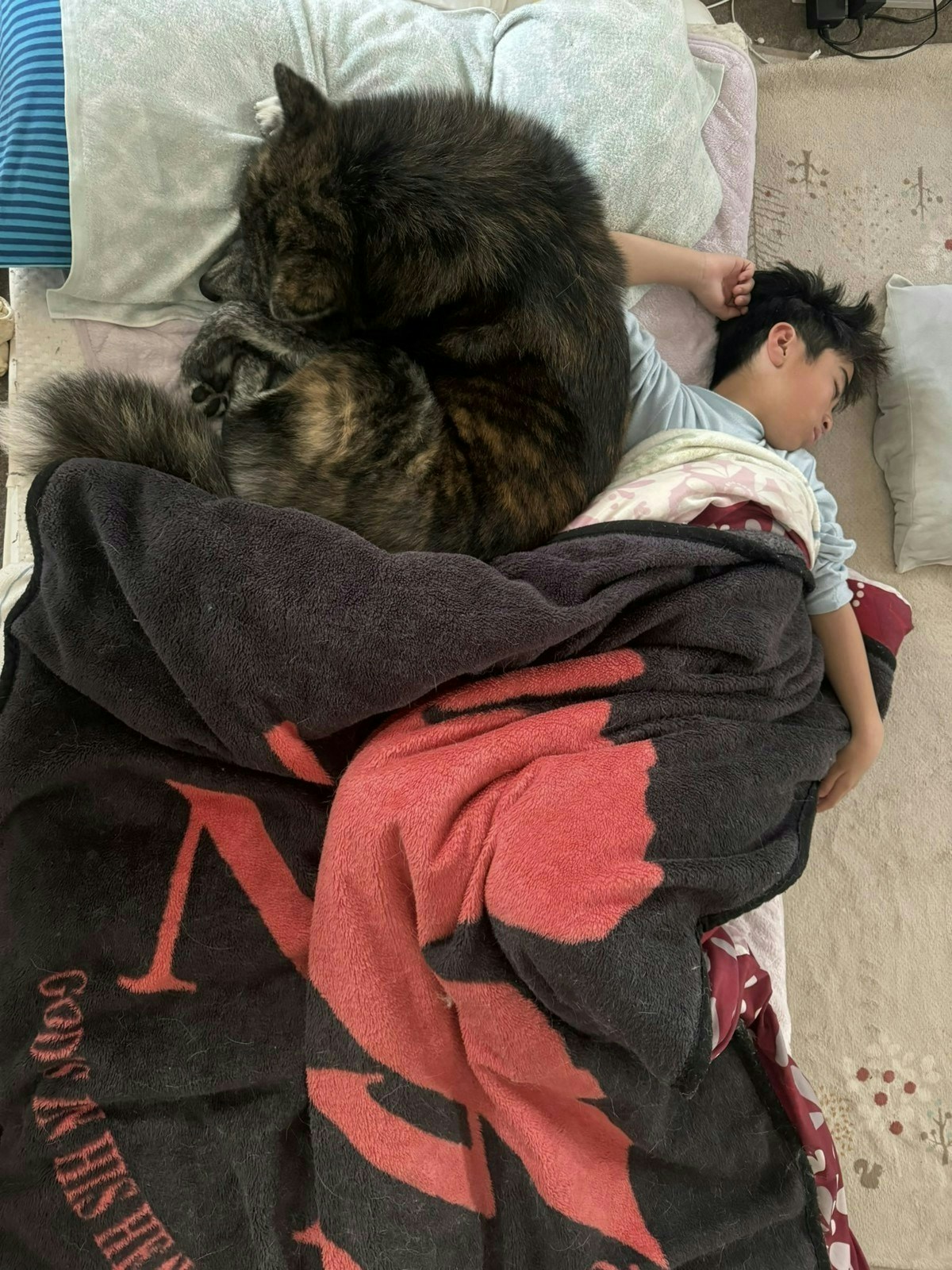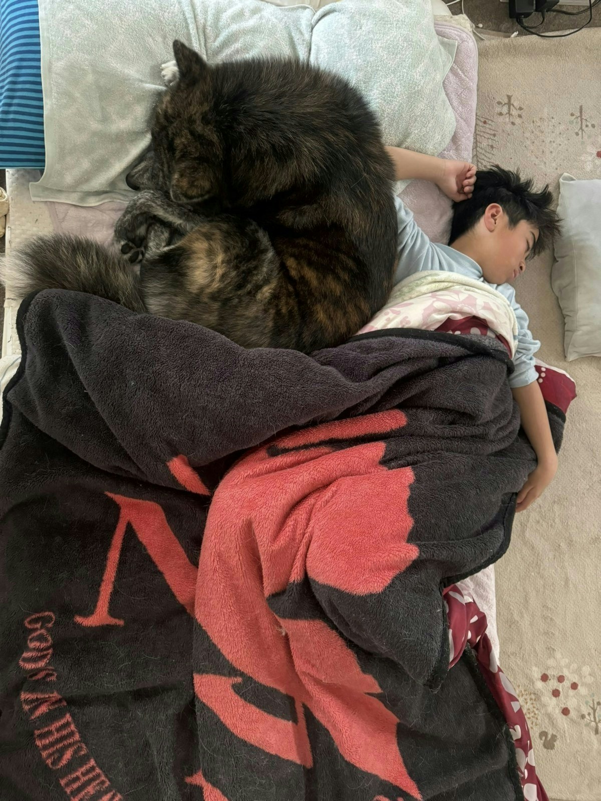 この投稿に「わが家の猫もよくやっていました」「猫がいる暮らしは子どもにとっても幸せですね」などのリプライが寄せられました。家族の幸せな生活が伝わってくる、すてきな投稿ですね。