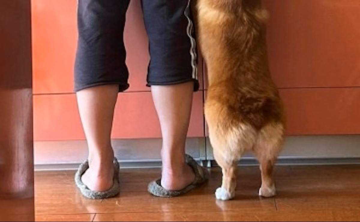 投稿者・ぺちさんは、愛犬のコーギーと暮らしています。ある日、何気ない生活の一部を、ぺちさんの娘が撮影したそう。幸せと愛おしさがあふれる後ろ姿をごらんください。
