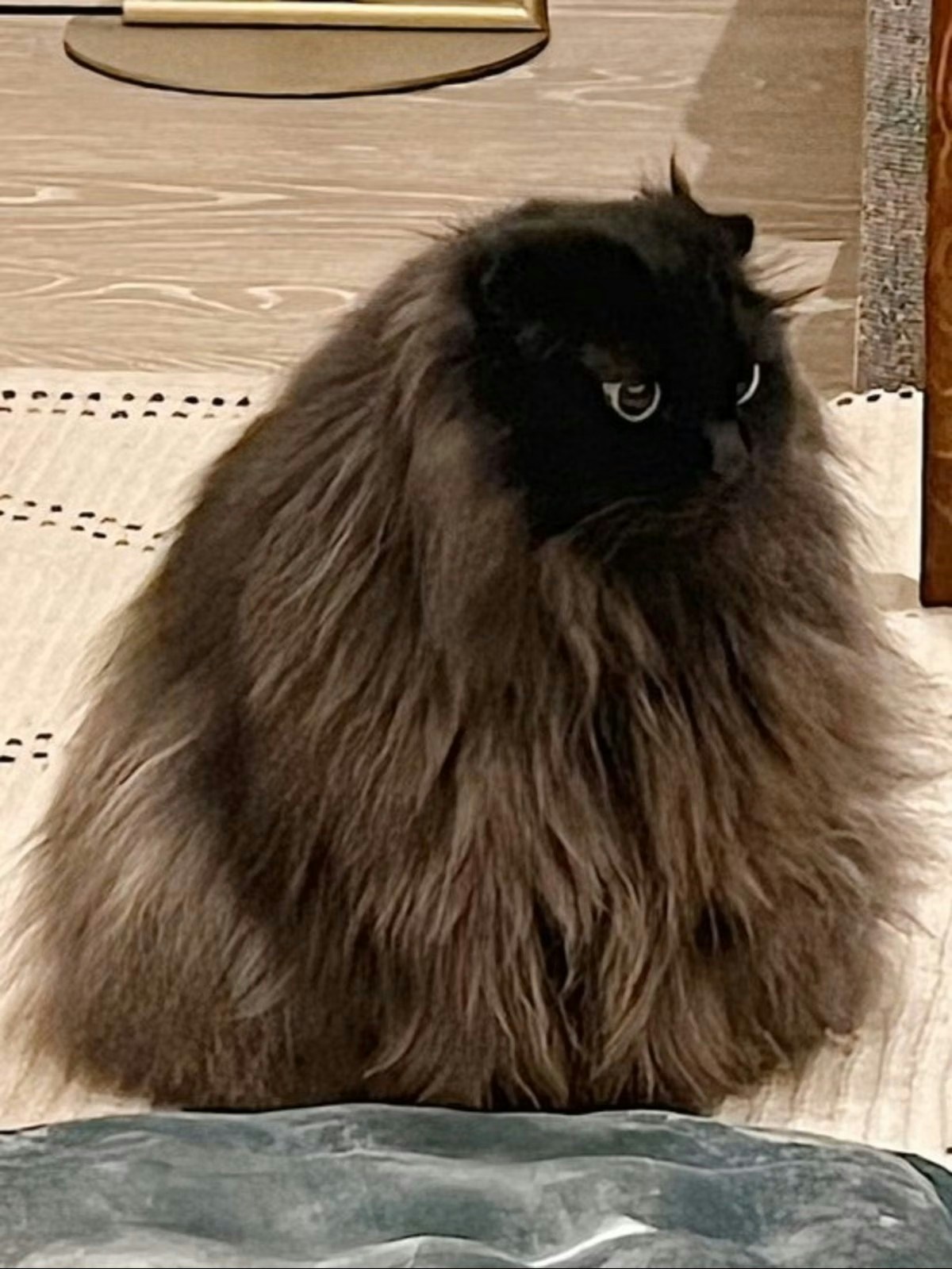 ふわふわした毛がいい感じに直角三角形を描いていて、まるでアニメに登場する猫キャラのよう。かわいいのはもちろんのこと、神々しい感じがしませんか?