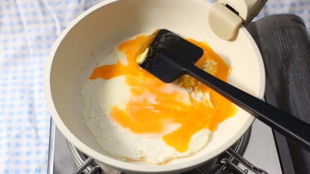 ①黄身を潰した目玉焼きを作る(卵2個)