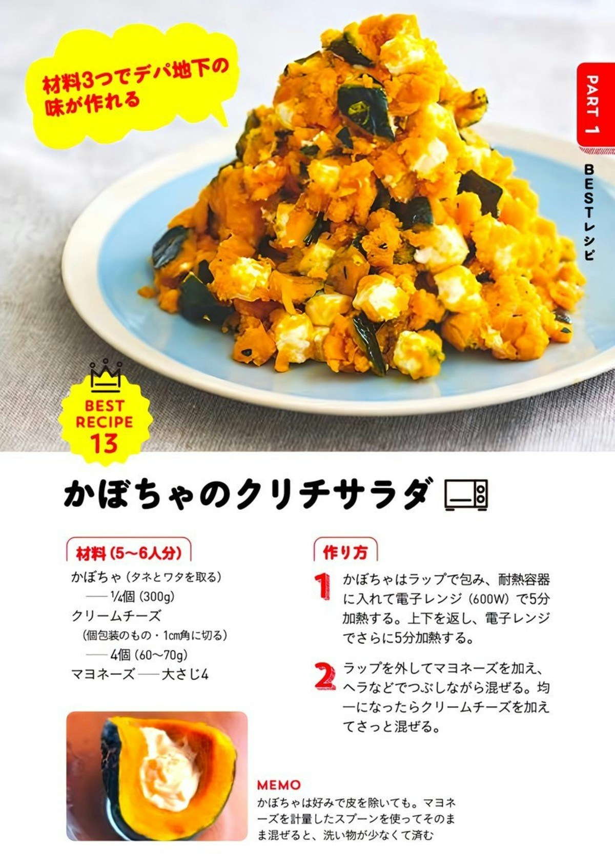 脱サラ料理家ふらお┊初書籍『ひらめきレシピ』(@furafurafufu)さんは、一度でいいので試してほしい【かぼちゃのクリチサラダレシピ】を公開。材料3つででき、簡単おいしいと話題になりました!晩ごはんの一品にいかがですか?