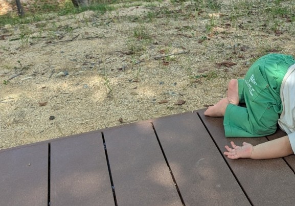 もはや寝てしまっている?相当にお疲れなのかな?と思ってしまうほど、全力でくつろぐ姿に思わず笑ってしまいました。まるで溶けてしまっているよう!写真の後ろの方にも遊び場が見え、広そうで子どもたちが喜びそうな公園ですが…くつろぐのも楽しみのひとつかもしれませんね。