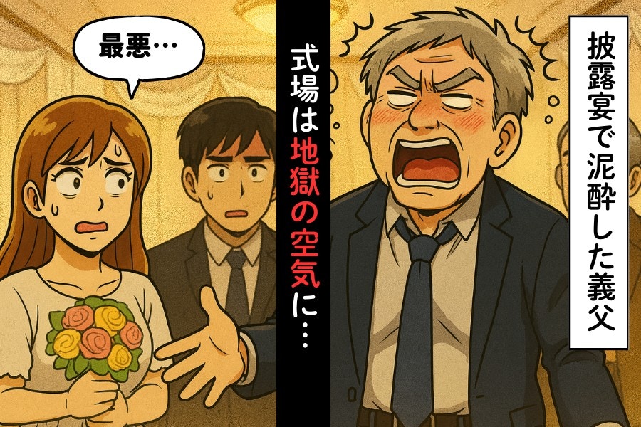 悪酔いのせいか、本性か――。義父は新郎のスピーチを聞き入る大衆の静寂を切り裂くように、しゃがれ声の効いた怒声をあげました。会場は温かい静寂から一転、冷たく張り詰めた空気が広がりました。