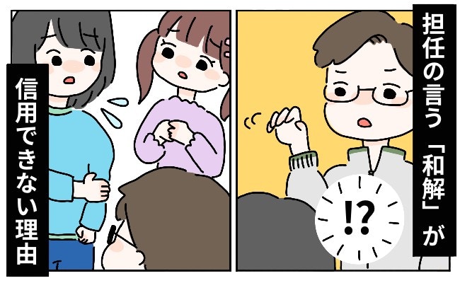 しかし、ののか曰く「口先だけ謝って帰っただけ」とのこと。帰り道もお互いにらみ合いのようになり、まったく和解ではないといいます。先生は本当に解決したと感じたのかもしれませんが、解決したなんて口だけのウソだと思ってしまいました。