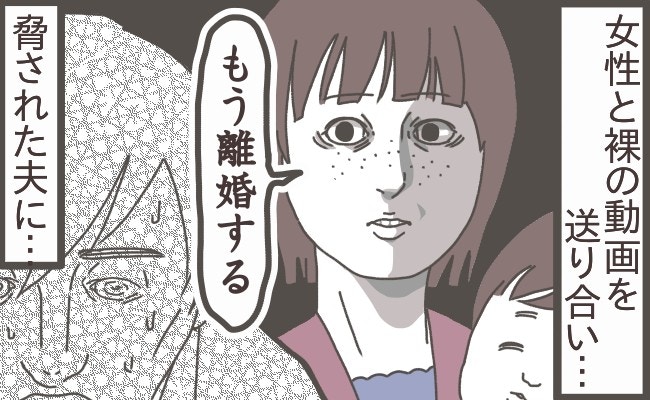 夫の裸の動画が、夫の人間関係の全てにばら撒かれてしまいました。一生の恥をさらすことになった夫は「会社に行きたくない」と泣き崩れます。自分の愚かな行動によってプライドをズタズタにされた夫の姿と、過去の夫の嘘が重なり、主人公はもう夫を信じることはできないと判断。ついに、夫に「もう離婚する」と告げます。