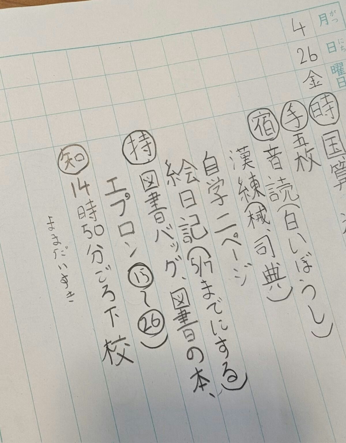 9歳が書いた連絡帳、小さな文字で書かれた秘密のメモに6万いいね