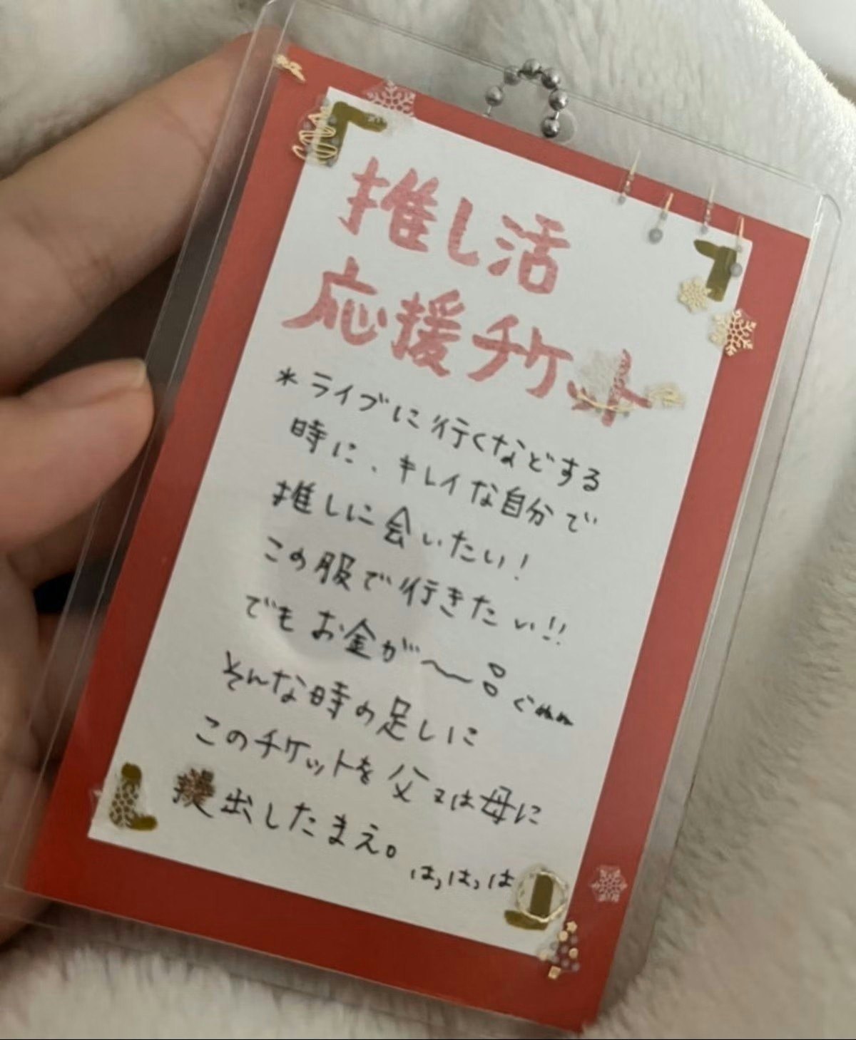 親に自分の好きなこと応援してもらえると、うれしいですよね。いくつになっても、その気持ちは変わらないのでしょう。きな己さんは、推し活を母親から応援してもらい、とてもうれしそうです。親として子どもの世界が広がることを自然に受け入れ、子どもが大切に思うことを応援する気持ちが伝わります。