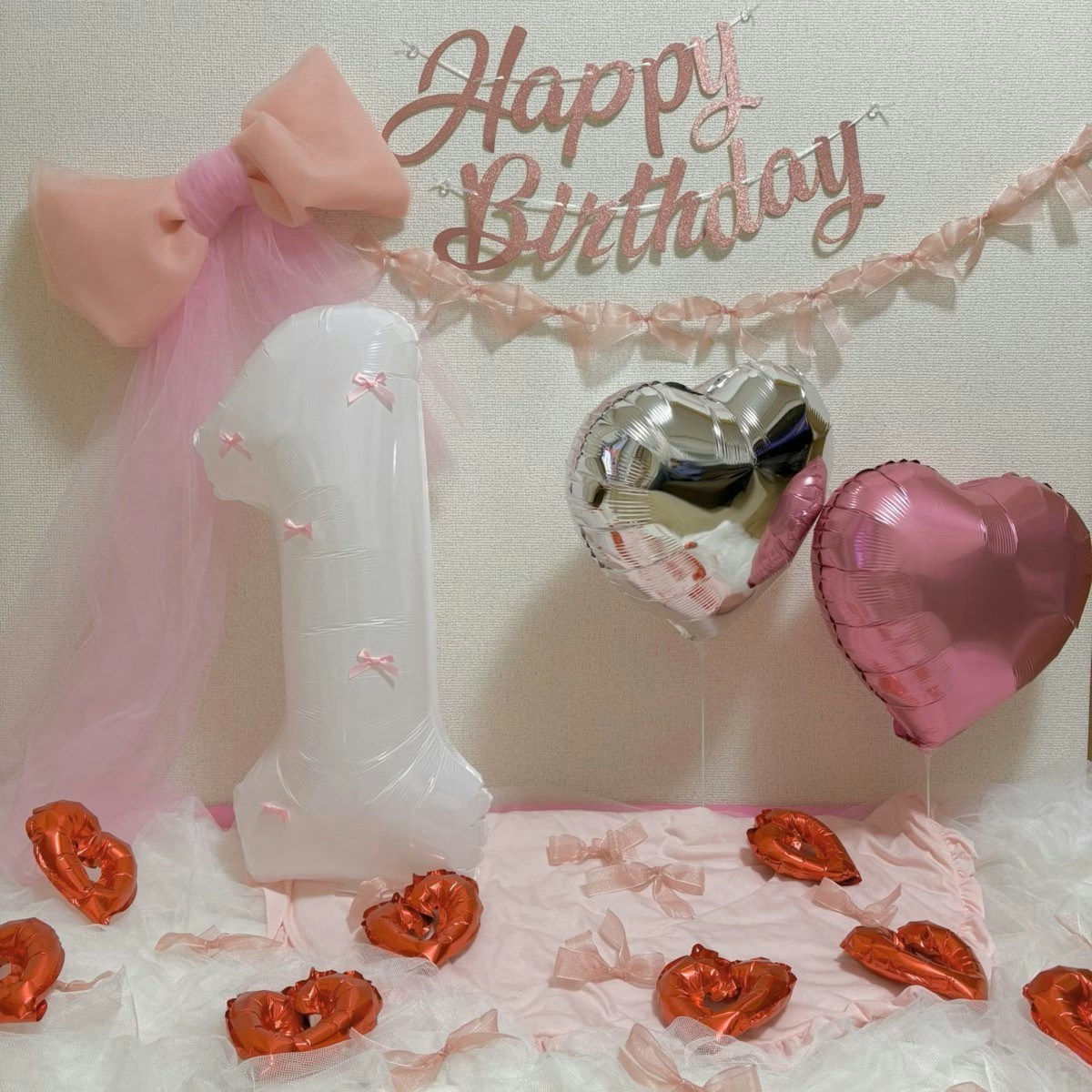 ご紹介するのはえびいくら☺︎🦐🎀1y(@i_eat_ebi)さんが投稿したある写真。わが子の1歳の誕生日。皆さんはどんなお祝いをしたいですか?かわいく飾りつけをして、写真を撮り思い出に残したいと思う人もいるでしょう。飾りつけに気合いが入るのも共感できます。