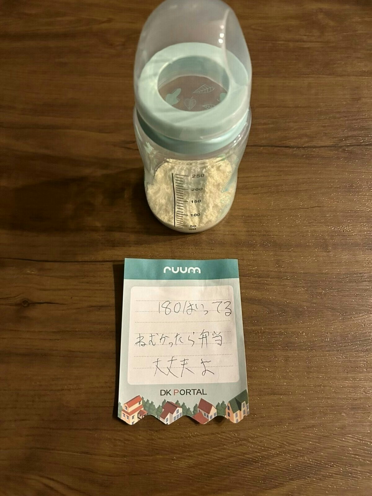 今回の投稿者・ユゐカさんの夫は朝から力仕事で多忙。そんな中でも、深夜に帰宅した後にはミルクの準備とともに置き手紙をしていてくれたそうです。