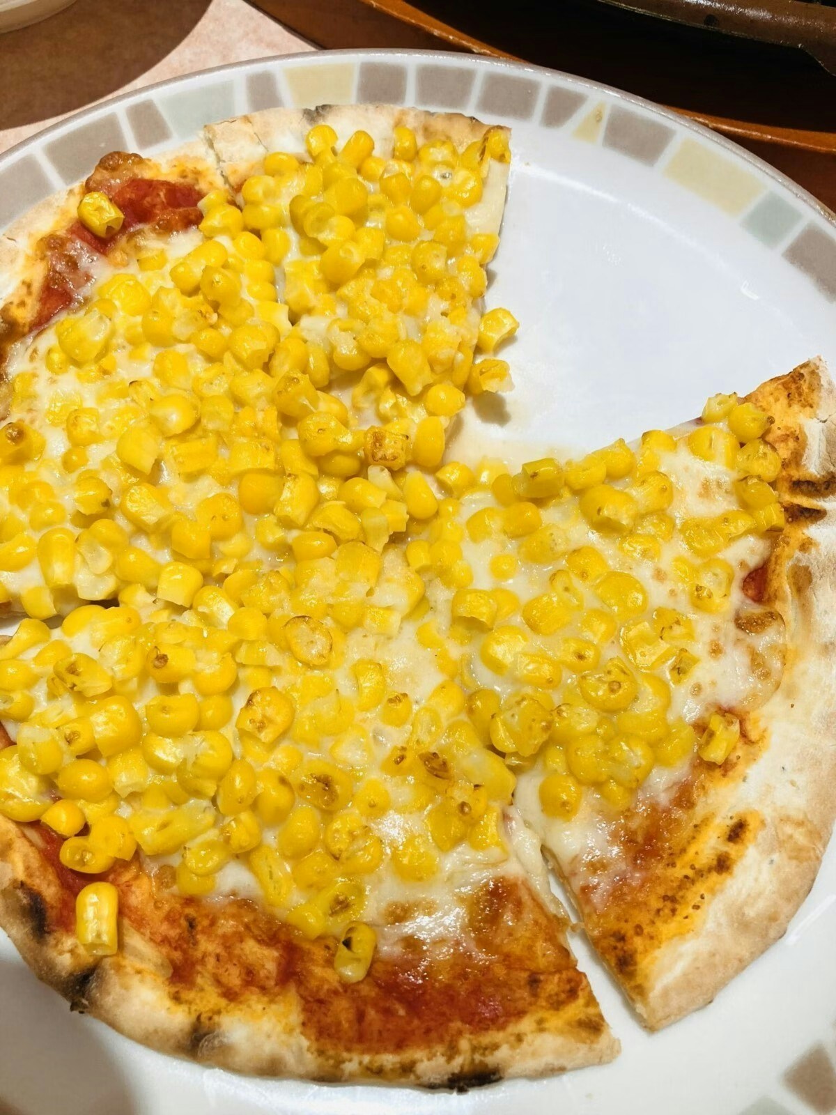 コーンがたっぷりと乗ったおいしそうなピザ。子どもが大好きなメニューですし、多くの飲食店の子ども向けメニューでよく見かけますよね。