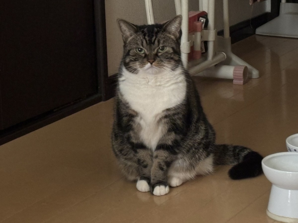 愛猫と暮らす投稿者・もん(@marukotokinako)さんはある日、大寝坊をしてしまい「やってしもーたー!」と猫用食器に目を向けると、そこには鬼の形相でご飯を待つ愛猫のまるこちゃんが。反省せざるを得ないほど、ご立腹な様子の表情に注目です。