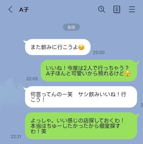 さらに、同僚の子も含めてで複数人でですが、今度焼肉行きませんか??みたいな、食事の誘いもきてました。